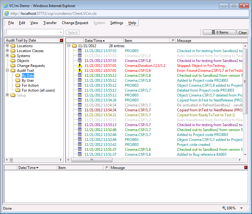 The Audit Trail is the essential reference to how a VC/m system is being used. It contains a permanent record of activity within VC/m, including the following information: